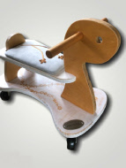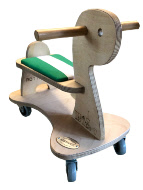 Het zadel is van echt leer, beslagen met 4 meubelspijkers.